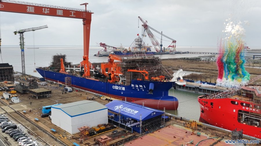 3月6日,我国自主研发建造的疏浚利器,首艘25000立方米舱容等级的超大型自航耙吸挖泥船,在振华海工基地顺利下水。