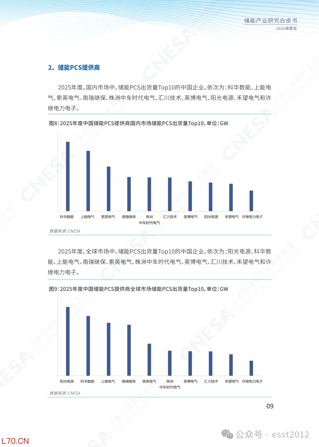 图9:2025年度中国储能PCS提供商国内市场储能PCS出货量Top10,单位:GW2025年度,全球市场中,储能PCS出货量Top10的中国企业,依次为:阳光电源、科华数能、上能电气、南瑞继保、索英电气、株洲中车时代电气、英博电气、汇川技术、禾望电气和许继电力电子。