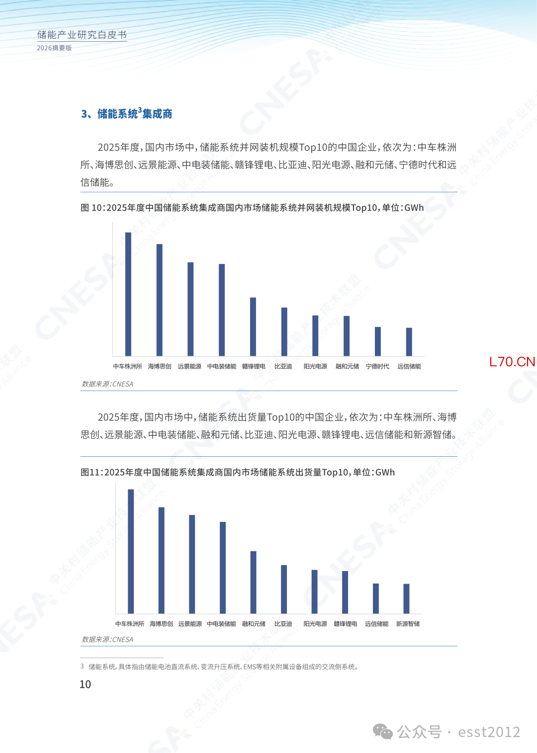 图 11:2025年度中国储能系统集成商国内市场储能系统并网装机规模Top10,单位:GWh2025年度,国内市场中,储能系统出货量Top10的中国企业,依次为:中车株洲所、海博思创、远景能源、中电装储能、融和元储、比亚迪、阳光电源、赣锋锂电、远信储能和新源智储。