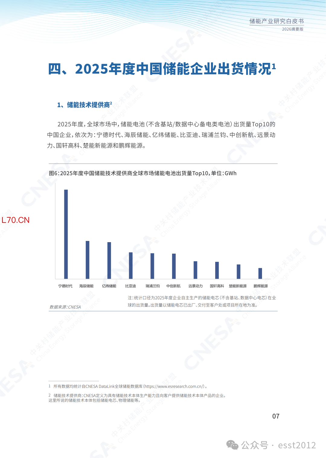 1.CNESA定义储能技术提供商为具有储能技术本体生产能力且向客户提供储能技术本体产品的企业。这里所说的储能技术本体包括储能电芯、物理储能等。统计口径为2025年度企业自主生产的储能电芯(不含基站、数据中心电芯)在全球的出货量。出货量以储能电芯已出厂、交付至客户处或项目所在地为准。