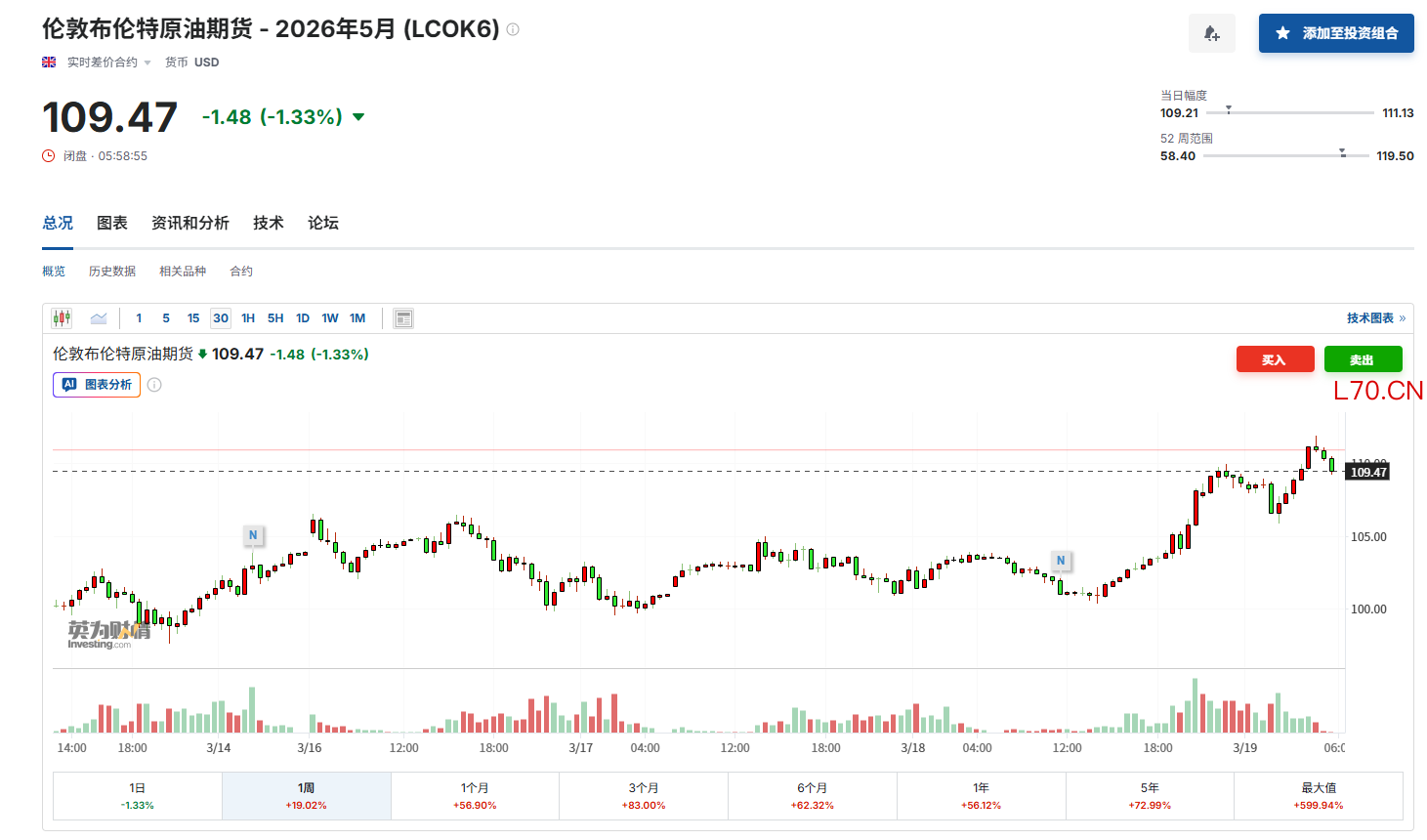 受这些消息影响,国际油价也继续飙升,基准布伦特原油期货已升至每桶109美元上方,似又有突破110美元关口的趋势。